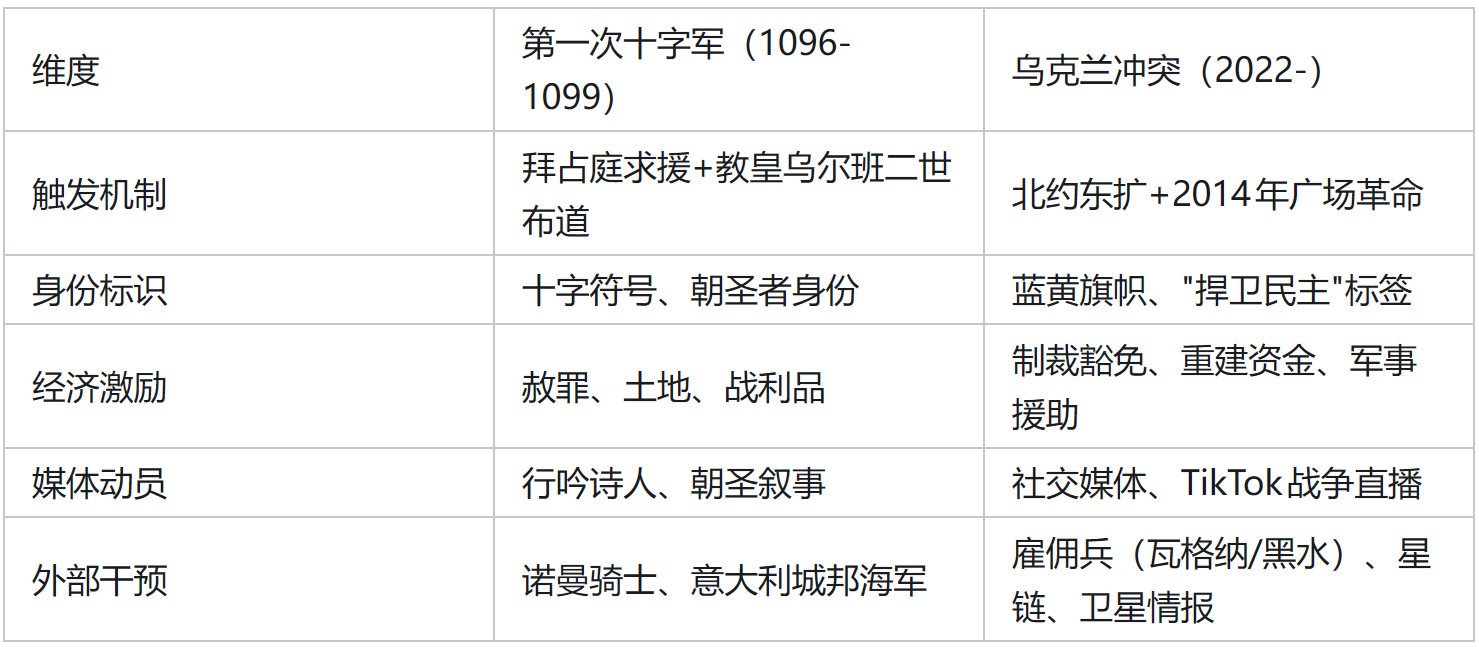 这两个场景之间没有因果链条,但有结构性的共振:技术现代性为古老的末世论提供了新的实现手段。当”智能弹药”被用于”捍卫价值观”时,1096年的幽灵并未远去——它只是学会了使用GPS制导。