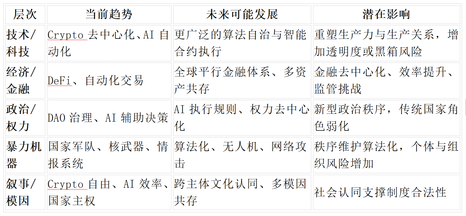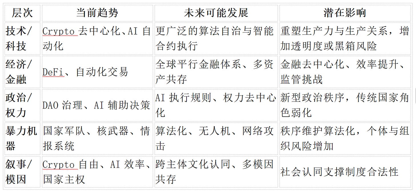 o 去中心化金融与全球资源调配,迫使权力结构多极化。