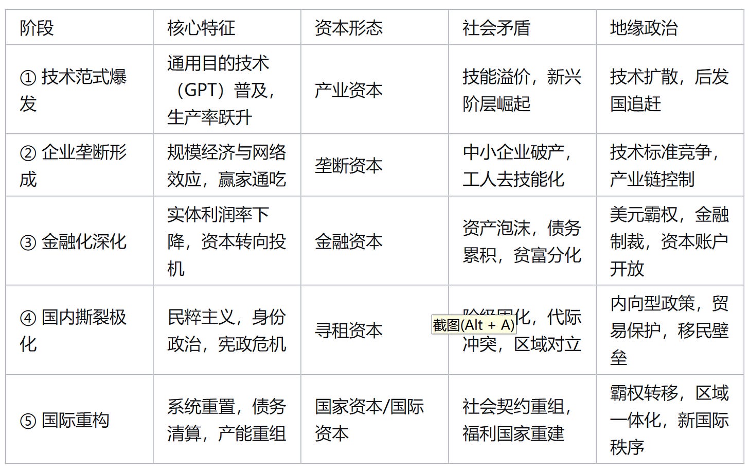 技术范式(能量输入):新技术的出现(如蒸汽机、电力、互联网、AI)带来了生产率的爆发,创造了巨大的增量财富,暂时掩盖了分配矛盾。