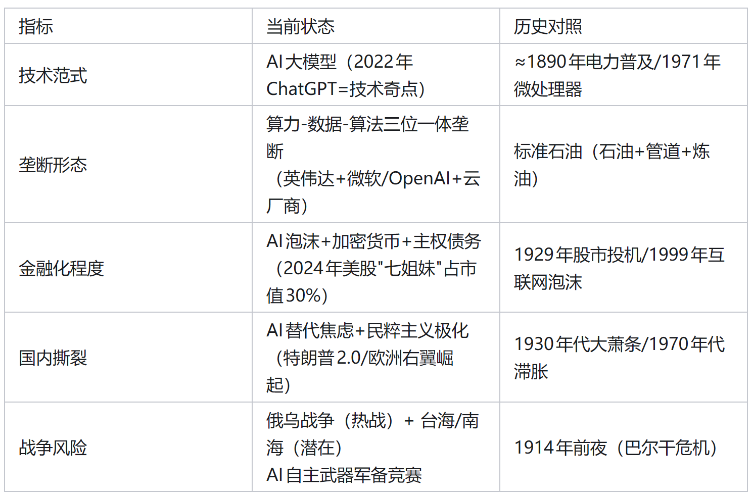 这个“技术-垄断-金融-撕裂-战争”模型不仅仅是一个历史总结,更是一个倒计时器。