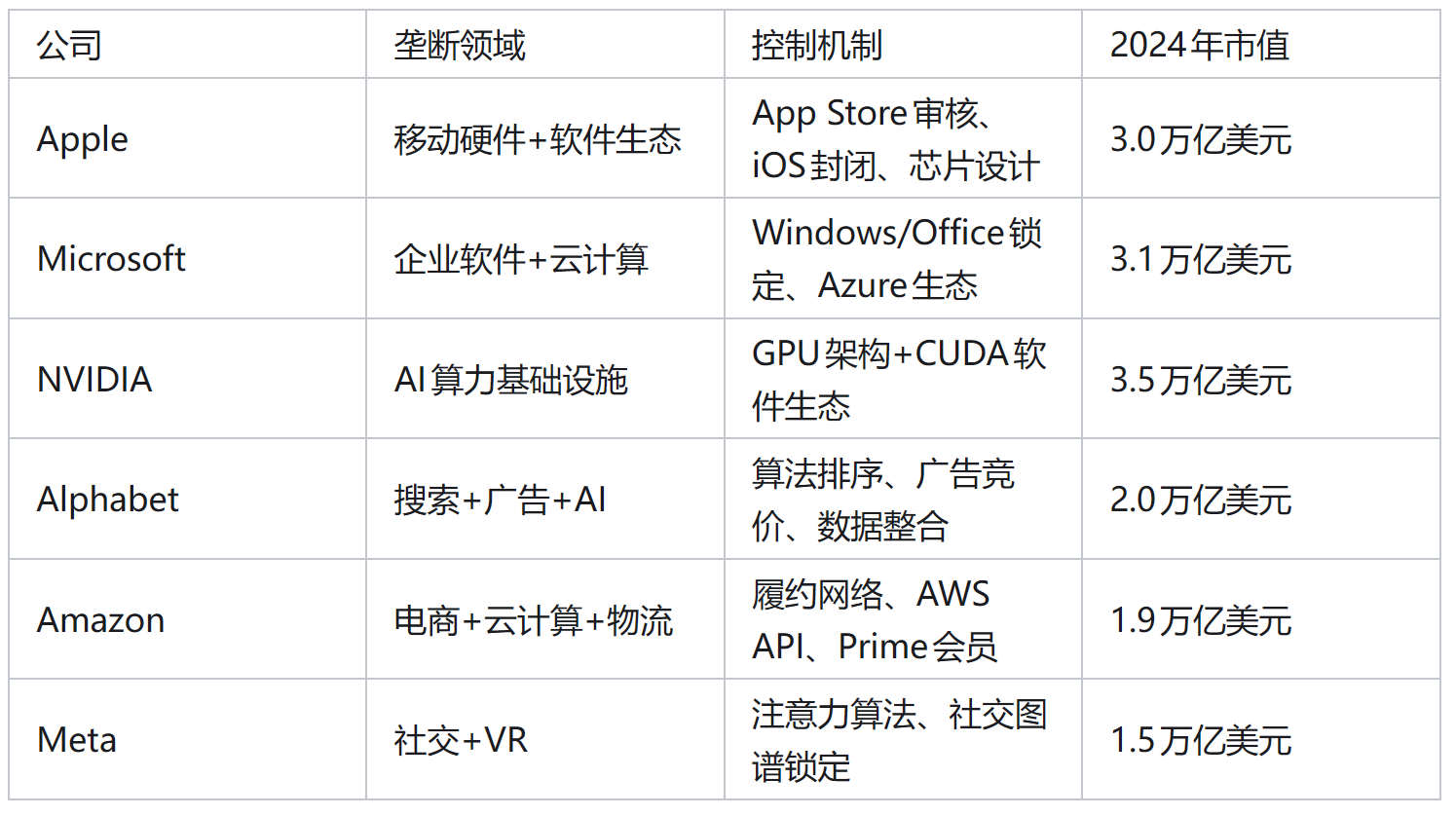 l 结构性拆分:将NVIDIA的芯片设计与CUDA软件生态拆分,将OpenAI的模型层与应用层拆分,打破”硬件-软件-数据”的垂直整合。